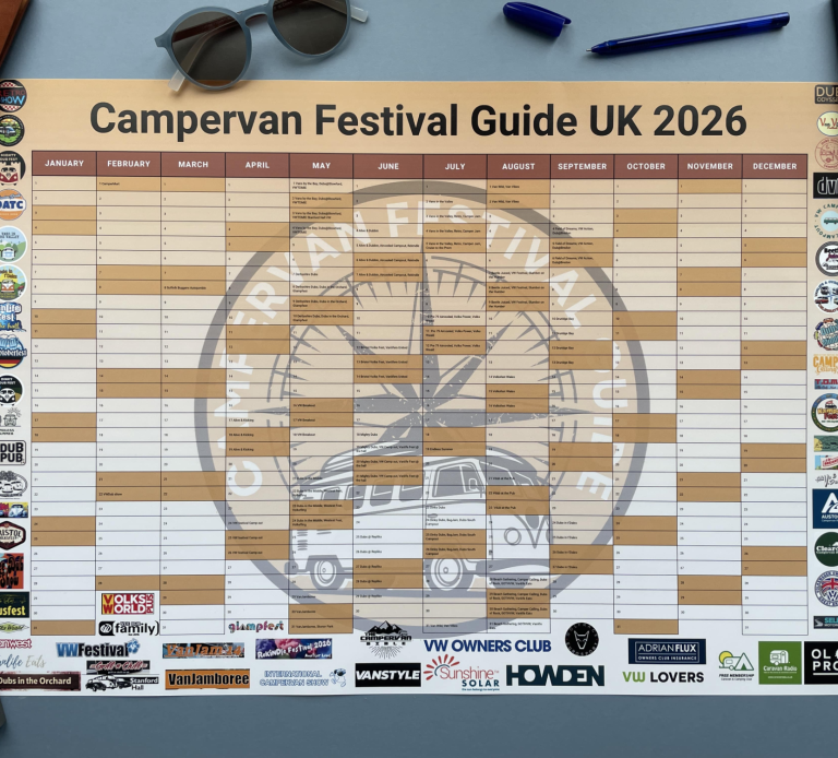 We have partnered with the Campervan Festival Guide on their 2026 Wall Planner. Their awesome A2 printed Wall Planner lists over 80 Campervan Festivals and Shows, with something for everyone and every type of Camper, motorhome and home on wheels! You can plan your year around all of the shows and events you want to go to and we think it’s better than your average stationary shop wall planner and calendar.